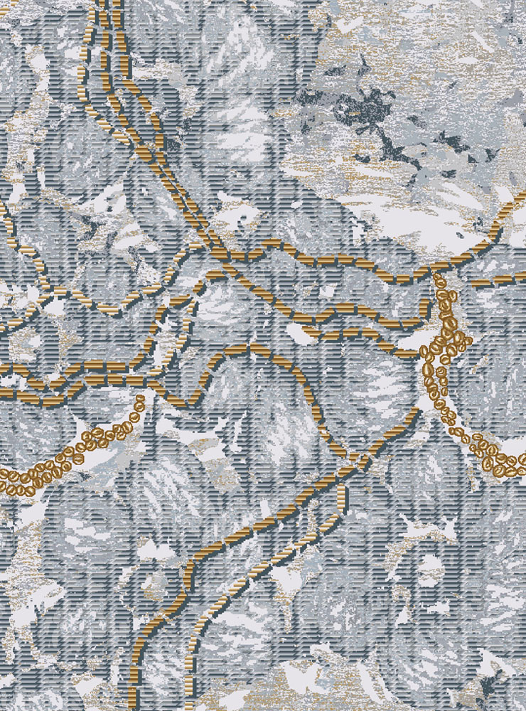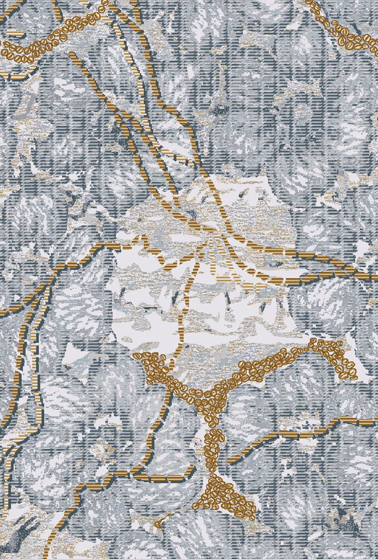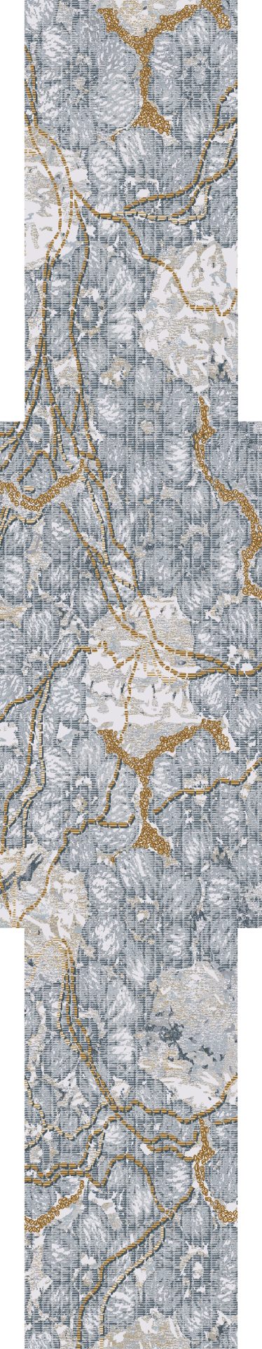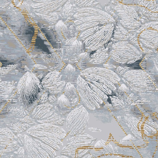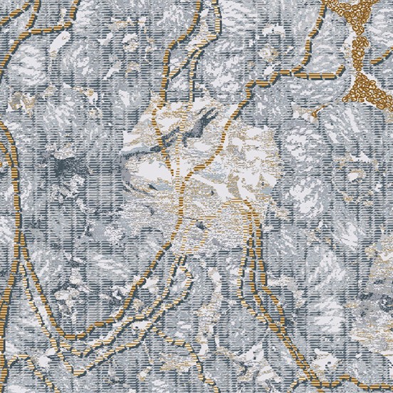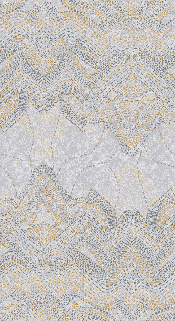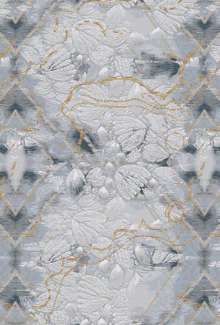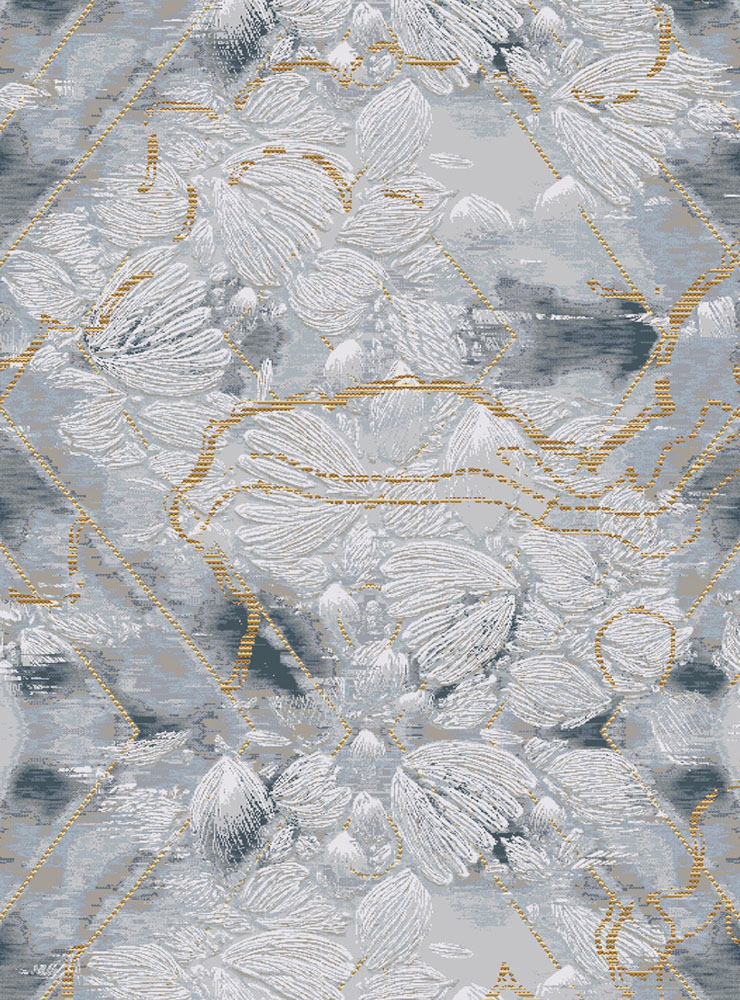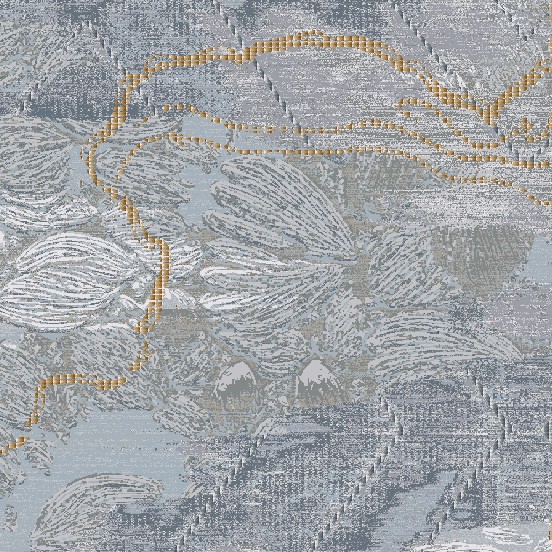 We considered the many treatments available to our creativity, from machine and hand embroidery, AI and digital applications. Here the humble thread becomes the designer’s creative mark and expression. The different effects created by silken-spun filaments, and sparkling tactility, become the motifs with which to grace our floors.