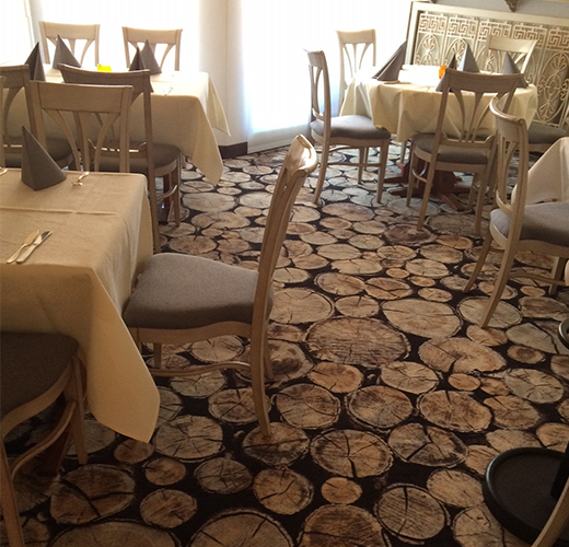 Customized designs from our Pure Elements Collection were recently installed at the Inselhotel Rote Erde, Borkum, an East Frisian Island. Here you can see the transformation from design to carpet. We combined the sand and wooden plank designs to reflect on the North Sea beaches which are located five minutes away, to furnish the corridors of the hotel. For the restaurant area our circular wood design was used to create a natural theme throughout.