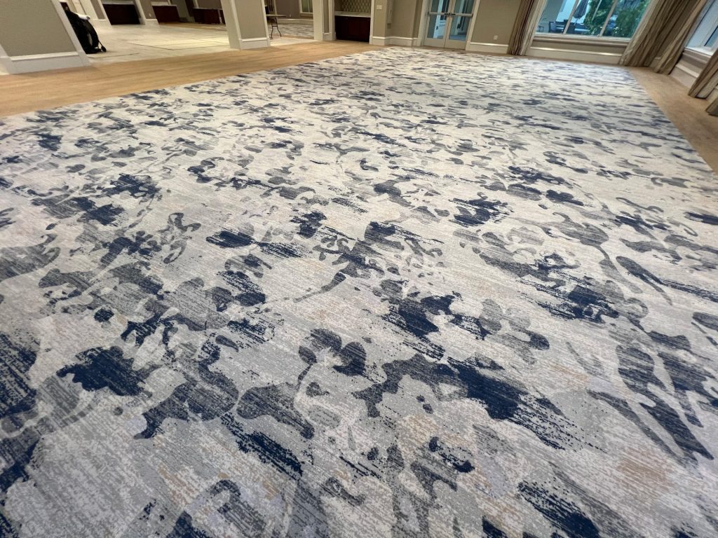 BallenIsles Country Club is a prestigious private club located in Palm Beach Gardens, Florida, renowned for its exceptional amenities and vibrant residential community. Once the home of the PGA of America, the club carries a rich legacy in golf and continues to be a premier destination for sports, leisure, and luxury living. Recently, BallenIsles completed an expansion and renovation of its Sports and Lifestyle Complex, increasing its size from 65,000 to 71,000 square feet. The interiors were designed by the full-service design firm Larson Nichols, whose concept embraces an abstract organic aesthetic—balancing botanical motifs with elements of contemporary abstract expressionism. Couristan collaborated with the award-winning firm to create 80/20 Axminster carpets for the club’s Circle 100 Dining Room and Corridors. The palette, inspired by the Florida setting, leans toward lighter tones to evoke a sense of airiness and warmth. Color was thoughtfully neutralized: yellows were refined into soft whites, beiges, and tans, while blues were muted into subtle, tonal accents—creating an elegant and harmonious environment.