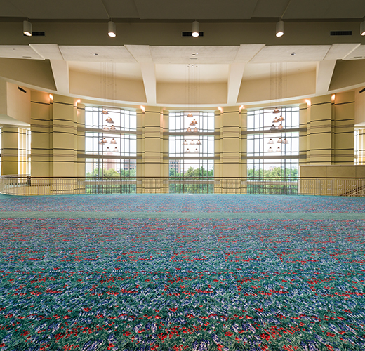 Located in downtown Fort Worth, the Fort Worth Convention Center is the city’s premier event facility, boasting over 300,000 square feet of event space. For some of their most popular spaces, including Ballrooms, Meeting Rooms, Pre-Function and Corridors, Couristan’s Omni Weave Axminster program was used to enhance the appearance of the Convention Center’s renovations. The design expertise of Elements of Architecture from Fort Worth, Texas and Interior Design Group in Arlington, Texas, were responsible for the featured jewel-toned star design. This unique design concept, mirrors the Convention Center’s contemporary ceiling which illuminates with 53 metal, small and large-scaled stars that draw their inspiration from the infamous bright and star-filled Texas skies at night. Over 24,000 square yards of Couristan Axminster carpet was used to cover this project.
