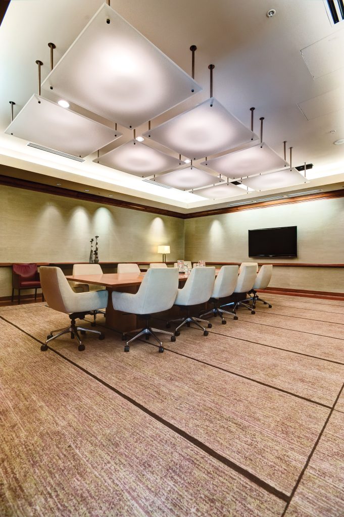 Couristan’s Omni Weave Axminster program was utilized to create over 19,000 square yards of carpet for the Hyatt Regency McCormick Place. Recognized as Hyatt’s fourth largest hotel in the world, McCormick Place is connected via an enclosed sky-bridge to North America’s largest convention center, allowing this luxury hotel to offer the most comprehensive event venues of all hotels in the Chicago area. The hotel and convention center’s chic, yet inviting décor was designed to enhance the property’s guest experience and dispel the preconceived notion of conventional hotels. In order to complete the contemporary-chic appeal, Couristan’s custom Axminster capabilities are on display in the property’s Boardrooms, Meeting Suites, Corridors, Pre-function, Ballroom Foyer, Prairie Center, Conference Center Meeting Rooms and Sky-Bridge areas.