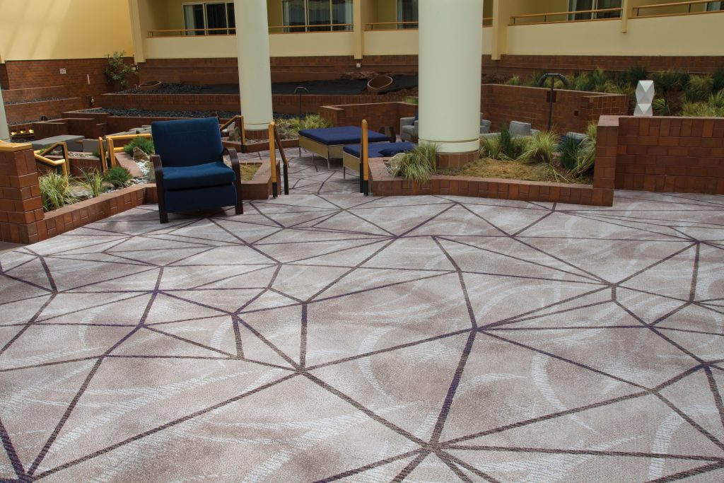 The Hyatt Regency Princeton offers 330 spacious, modern guestrooms and suites with warm décor and lifestyle features that are perfect for relaxing, working and entertaining. Capturing the true essence of the property’s mix of classic elegance and contemporary luxury; architecture and design firm, ForrestPerkins, Washington D.C., selected Couristan’s Omni Weave Axminster program to translate their custom, contemporary designs onto the floors of this newly-renovated property. Over 7,000 square yards of Couristan Axminster carpeting can be seen in property’s Ballroom, Junior Ballroom, Pre-function, Meeting Rooms, Corridors, Elevator Lobbies, Atrium, Breakout Rooms and Comedy Club areas of this destination hotel.
