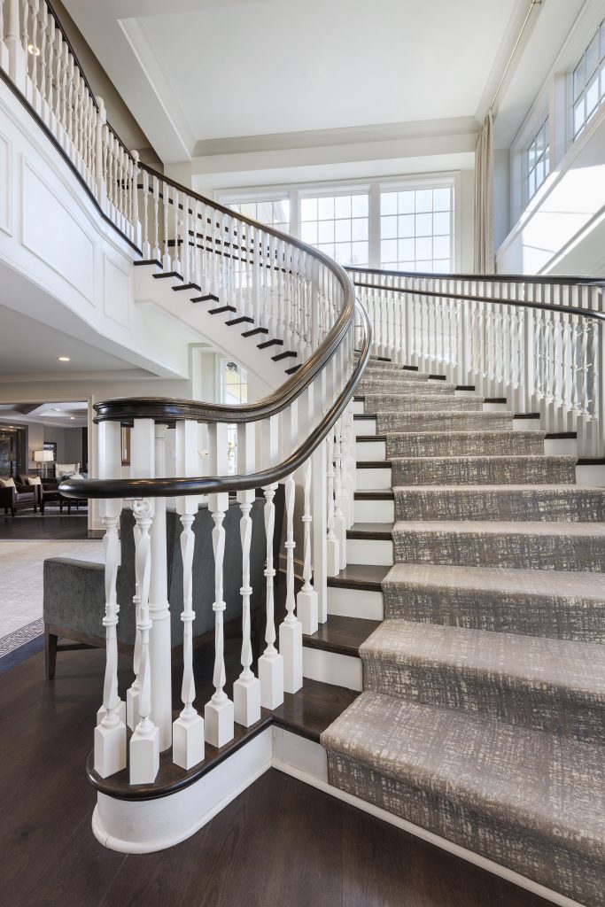 Just outside of Boston, the Oakley Country Club provides its members with breathtaking views of the city skyline and features a Donald Ross course design. With a master plan approved in late 2017, the club expedited major renovations to virtually the entire clubhouse. JBD JGA Design and Architecture was responsible for the architectural and interior design improvements to the front facade; which included a brand-new member dining complex, family and adult dining options, a complete makeover to the 19th Hole, a favorite among members, as well as redecoration of the ballroom and pre-function areas, complete with a dramatic grand stairway. Couristan’s ColourOptics Print program was utilized for the Pre-function and Grand Stairway areas, while a beautiful hand-tufted rug furbished the club’s Donald Ross Library.