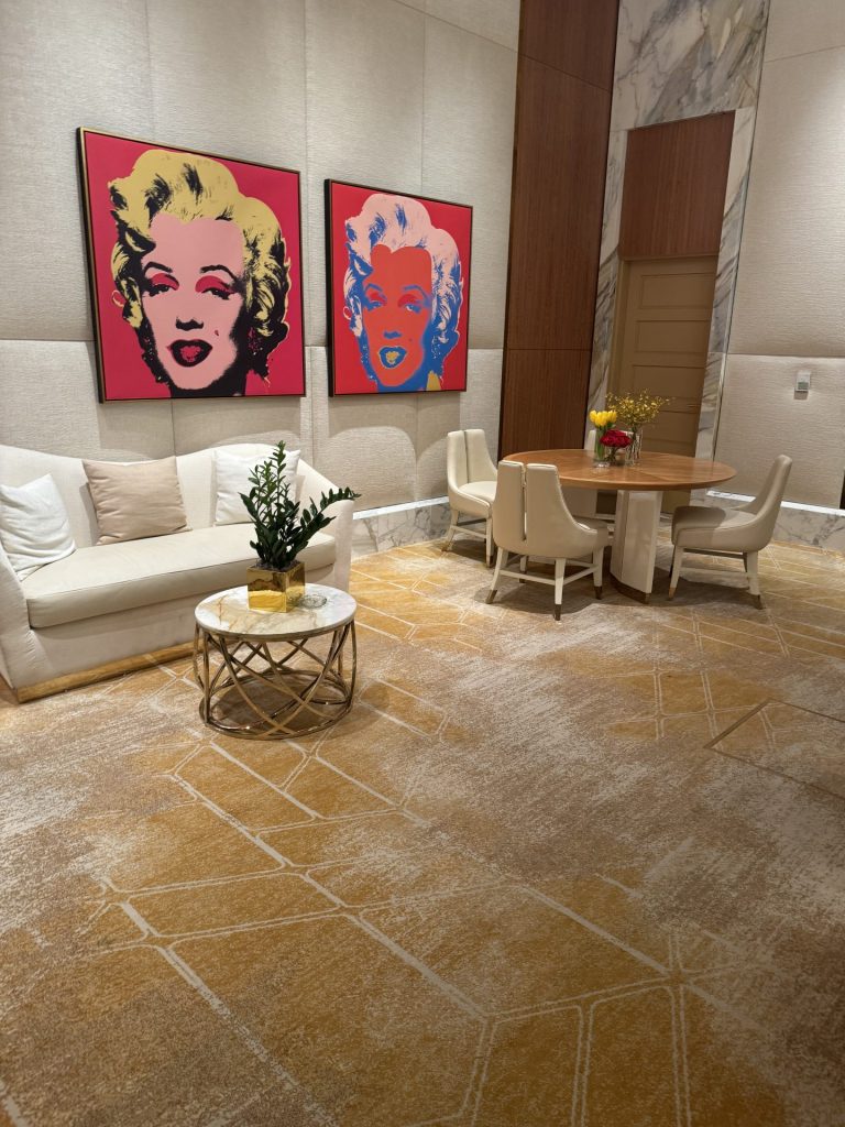 Resorts World Las Vegas seamlessly fuses modern sophistication with the timeless allure of the international Resorts World brand, crafting a luxurious experience that perfectly balances style, value, and variety for the discerning traveler. In collaboration with Steelman Partners, a leading Las Vegas-based entertainment and architecture firm, we designed and produced over 160,000 square feet of bespoke Axminster carpeting for the resort’s elite gaming areas, including Private Gaming, Poker Rooms, High Limit Slots, Baccarat Rooms, and the VIP Gaming Salon. Our 80% wool and 20% nylon Axminster program brought the casino’s design theme to life, as bold patterns infused with subtle Asian-inspired motifs in vibrant, organic hues added depth and sophistication to the space.
