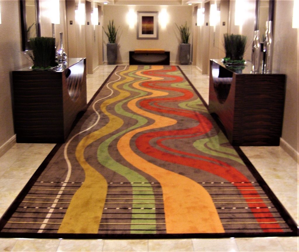 Featuring 2,663 guestrooms and 200 suites, Treasure Island Hotel Casino in Las Vegas, Nevada is the AAA Four Diamond resort on the Las Vegas Strip that offers a contemporary style with a high-energy atmosphere. The MGM Mirage Design Group in Las Vegas, Nevada, selected Couristan’s ColourOptics Print program to create over 800 square yards of Corridor and Elevator Lobby area carpeting. The custom carpeting was designed in a series of tropical colors and striations to seamlessly integrate this luxury hotel and casino’s whimsical Caribbean hideaway theme.