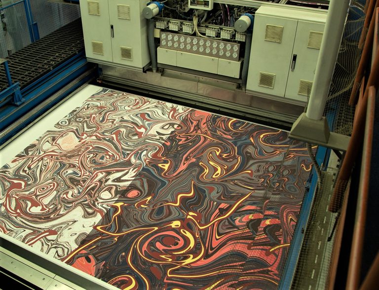 In addition to its color and design flexibility, another important factor is the precise printing capability of our ColourOptics print program’s machinery. The carpet is stationary when the printing process takes place, leading to accuracy of design, especially important when multi-width matching is required. Deepest color penetration and excellent print resolution are the result of our unrivaled expertise of mechanics and chemistry.